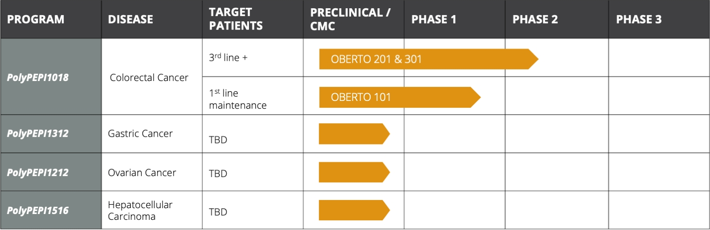 *Opportunity for co-development with novel CDx - assessed on a case-by case basis for each PolyPEPI product individually; **Lorincz et al Cells 2021 (Treos)